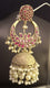 Exquisitely crafted ethnic earrings featuring intricate antique-style detailing , green stone highlights and cascading pearl drops. The gold and silver dual -tone finish adds regal charm